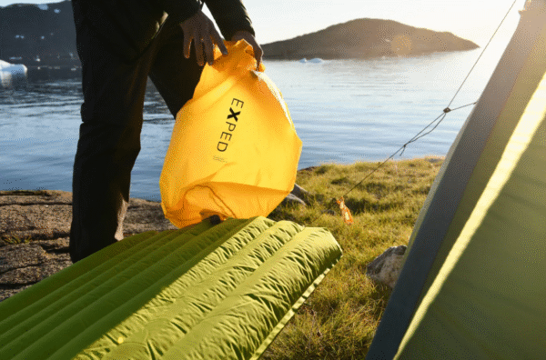 De Schnozzel Pumpbag is een pomptas van gerecycled materiaal, ideaal voor het snel en vochtvrij opblazen van EXPED-matten.