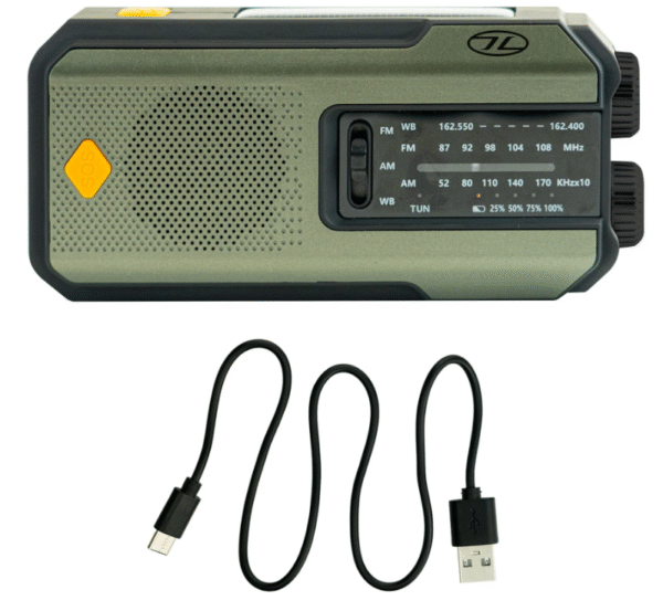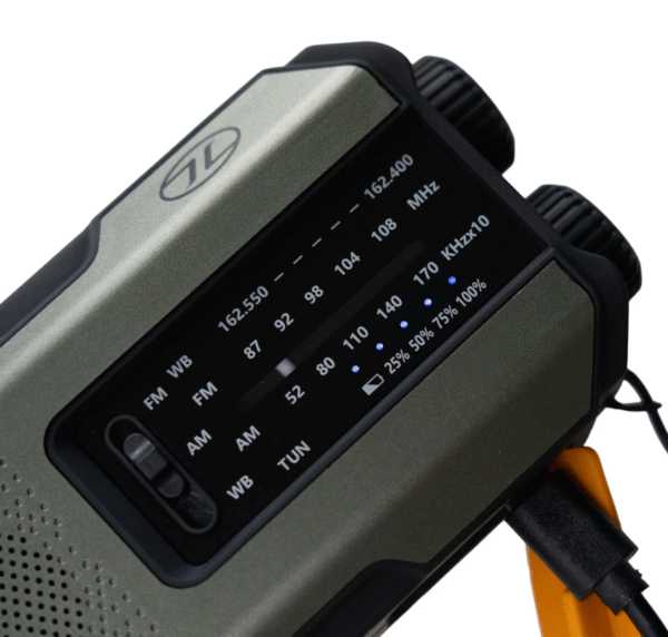 Deze multifunctionele Highlander Universal Survival Emergency Hub noodradio is noodzakelijk voor situaties waarin u niet aangesloten bent op elektriciteit. Deze radio voorziet u van licht, communicatie en een powerbank voor uw elektrische apparaten.