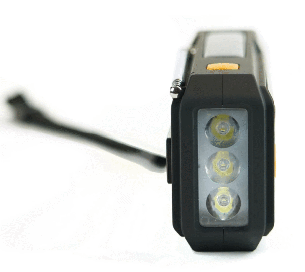 Deze noodradio kan op drie manieren van energie worden voorzien. Allereerst is hij USB-C oplaadbaar, het duurt 2,5 uur voor hij volledig is opgeladen, de kabel wordt meegeleverd. Daarnaast is er een zonnepaneel. Ten derde is er een handslinger. Als u één minuut draait, heeft u tot drie uur verlichting. Deze optie zorgt ervoor dat de functies van deze radio beschikbaar blijven.