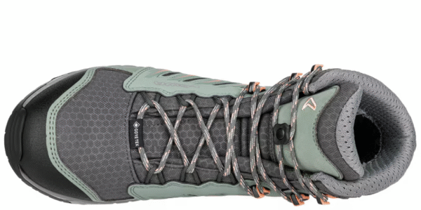 Het buitenmateriaal van de Lowa Trek Evo GTX Mid dameswandelschoen is gemaakt van mesh. Mesh is een synthetisch materiaal dat in verschillende vormen gemaakt wordt. Door het gebruik van mesh is de schoen licht, flexibel en is het ademend vermogen hoog.