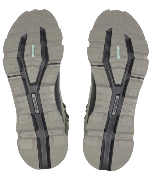 De door On-Running ontwikkelde buitenzool geeft en zorgt voor een goede grip en stabiliteit tijdens het wandelen. Deze zolen zorgen voor een goede afwikkeling van de voet. Het profiel van de zool is zo ontwikkeld dat het een goede grip geeft en geen slijk of grond vasthoudt.