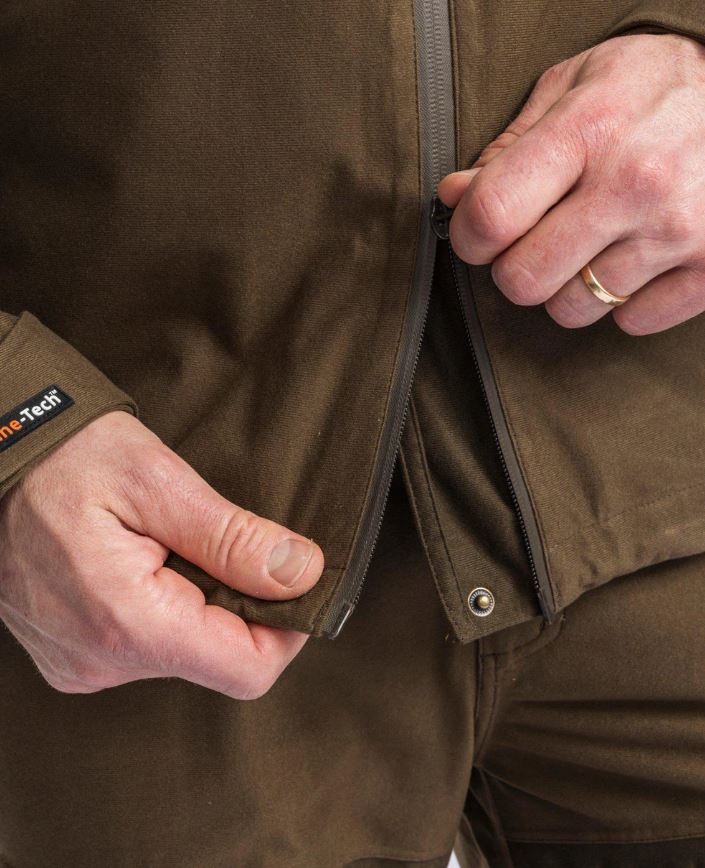 De jas heeft een twee-weg ritssluiting. De afneembare capuchon heeft een versterkte klep. Dankzij de versterkte klep stroomt de nattigheid niet over uw gezicht. Daarnaast beschikt het Pinewood Retriever Active Jacket Heren over ventilatieopeningen aan beide zijden van de jas. De openingen hebben een ritssluiting.