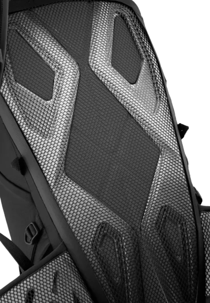 De rugpand van de backpack is ontworpen voor optimale ventilatie en comfort. Het is niet verstelbaar, maar biedt een stabiele ondersteuning tijdens het dragen. De materialen zijn ademend, waardoor je rug koel blijft, zelfs tijdens intensieve activiteiten. De tas is niet specifiek ontworpen om water af te voeren, maar het materiaal is waterbestendig. Dit maakt het een betrouwbare keuze voor verschillende weersomstandigheden.