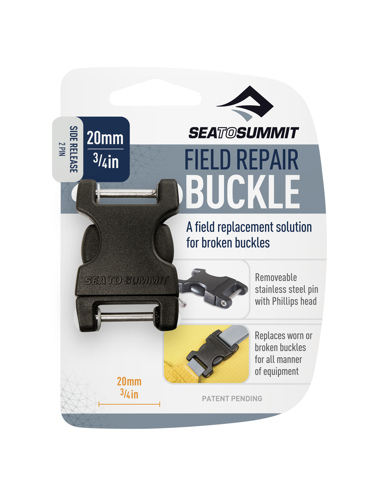 De Sea to Summit Field repair buckle 2 pin is te gebruiken voor alle merken. De Field repair buckle is beschikbaar in de maten 15 mm, 20 mm en 25 mm.